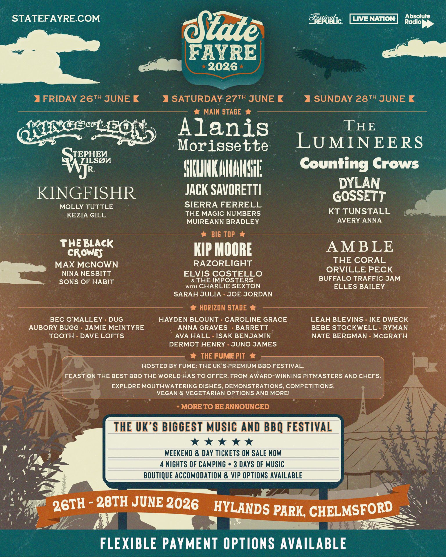 Experience the UK’s premier music and BBQ festival at Hylands Park, Chelmsford, where the soulful charm of Americana meets high-end luxury. From June 26th–28th, this event brings a true taste of the States to Essex with world-class pitmasters, whiskey bars, and boutique hospitality. For the ultimate experience, an Airstream stay offers the only “true Americana” way to enjoy the weekend—matching the silver-bullet heritage of the US with refined comfort. The 2026 lineup is a masterclass in rock and country, featuring Kings of Leon, Alanis Morissette, The Lumineers, The Black Crowes, and Skunk Anansie.